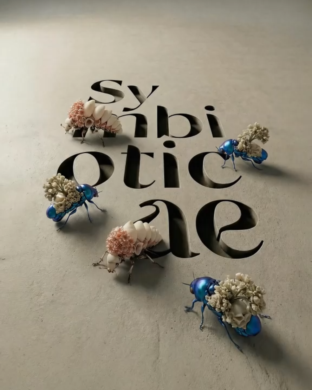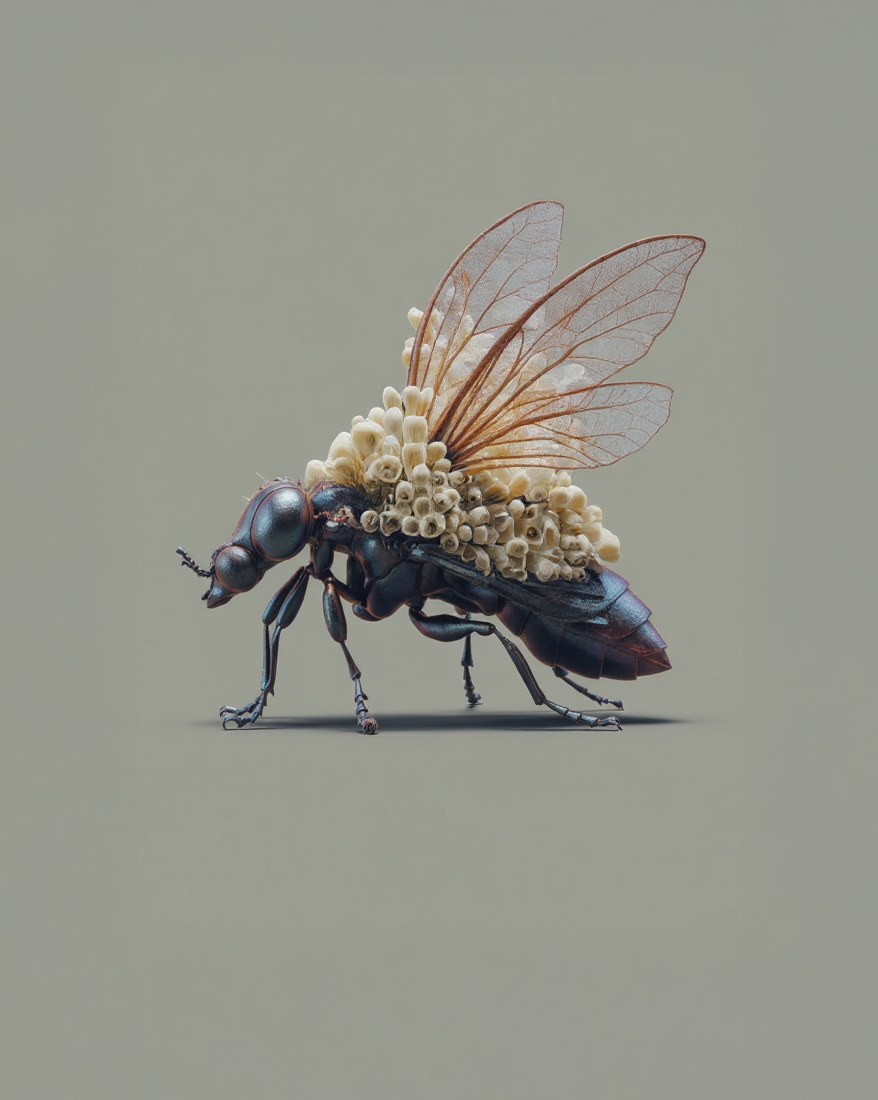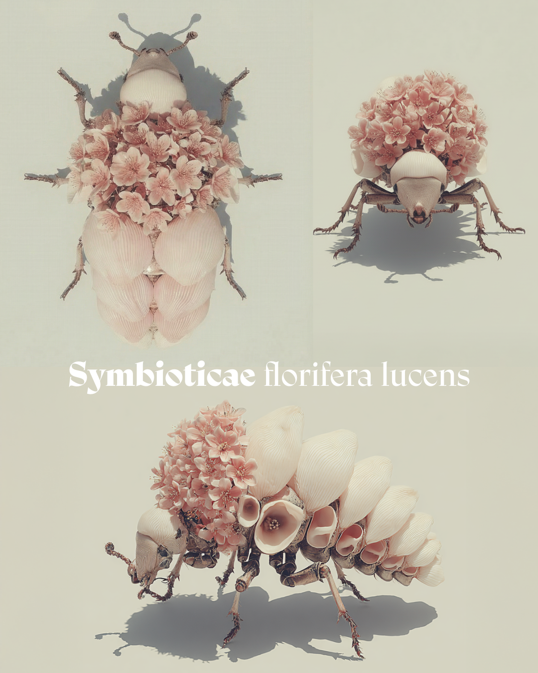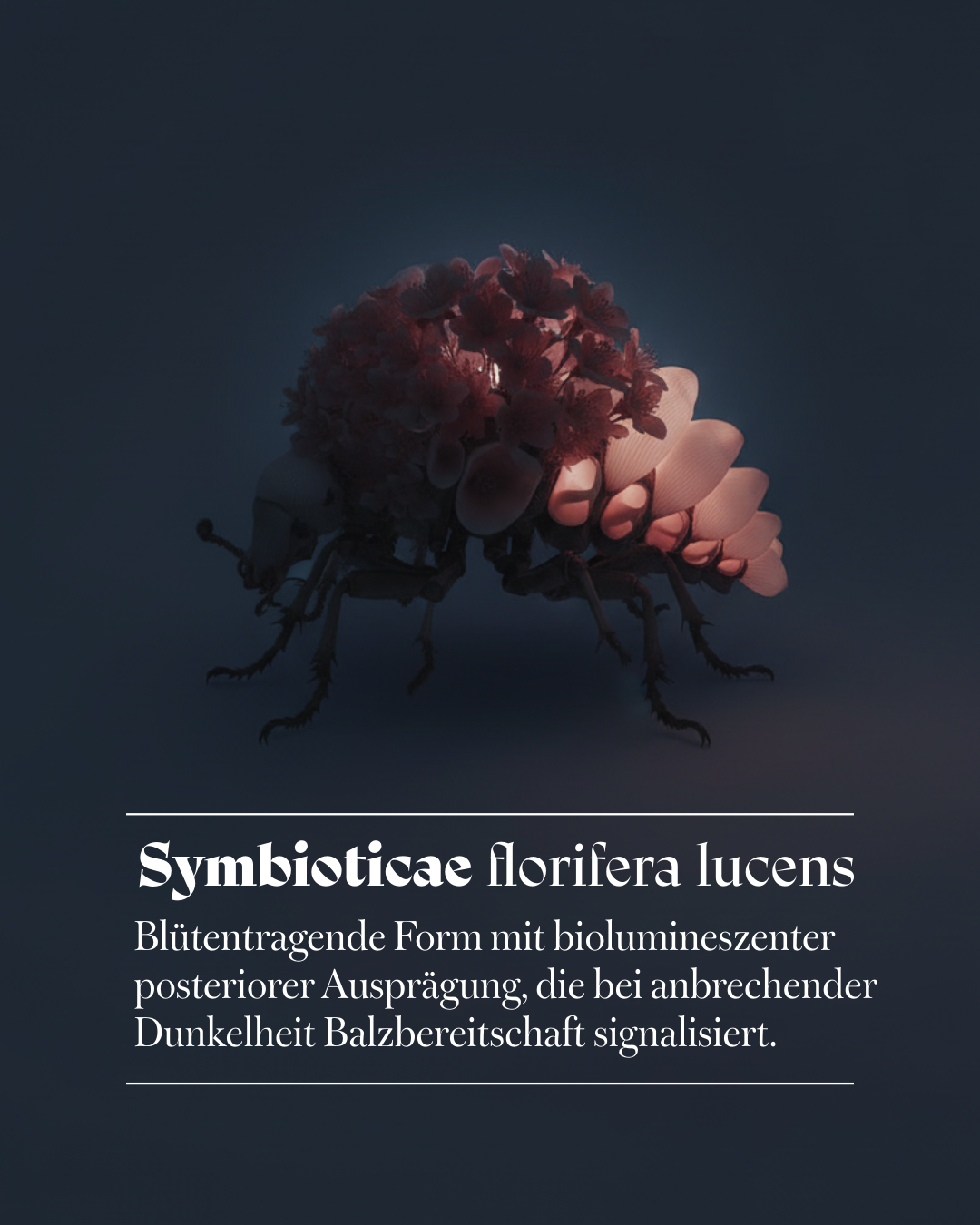 Die dargestellten Wesen gehen aus einer langfristig intensivierten Symbiose zwischen Insekten und Pflanzen hervor. Von einer wechselseitigen Abhängigkeit ausgehend, hat sich über Generationen hinweg eine strukturelle Einheit gebildet.